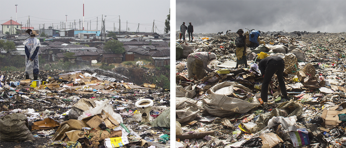 People living in the neighbouring slums are literally surrounded by waste, which is also what gives many local residents an income. Children start searching for food and valuable items on the dumpsite around the age of 10. Under incredibly health-damaging conditions, people rummage through the piles of waste, looking for materials they can sell to recycling companies.