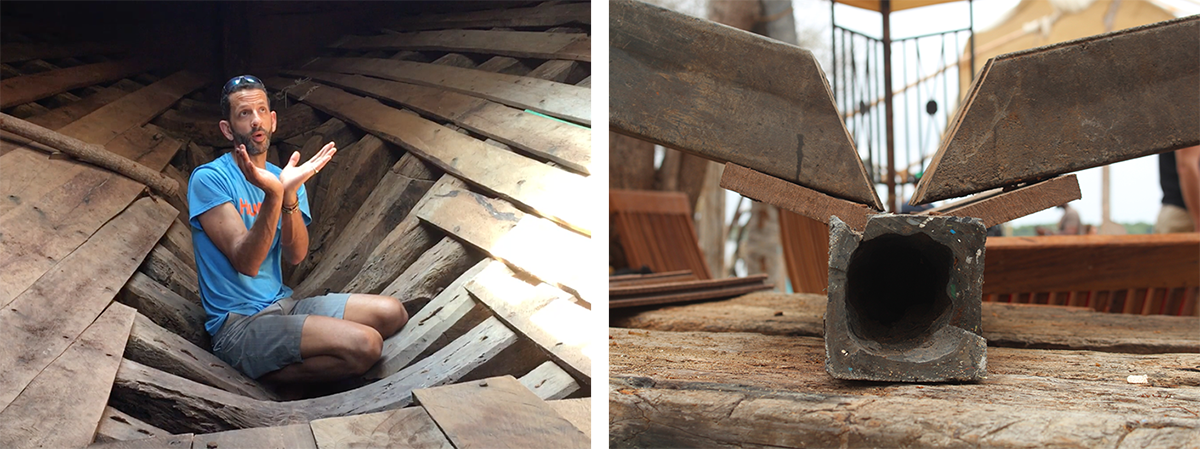 I came to Lamu just for the right weekend to join the launch of the building phase. After introducing me to the team, Ben explained to me how the Flipflopi Dhow will be built by showing me the construction of an original wooden Dhow as well as some samples out of recycled material.