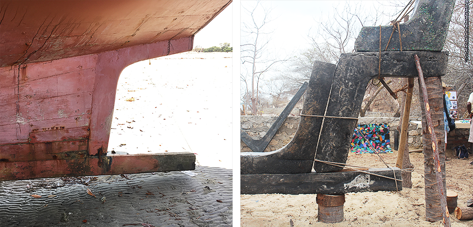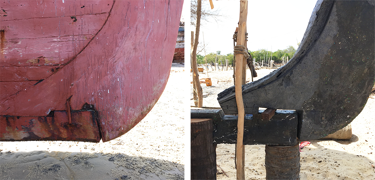 Stern of the Dhow - original (left) and recycled plastic (right)