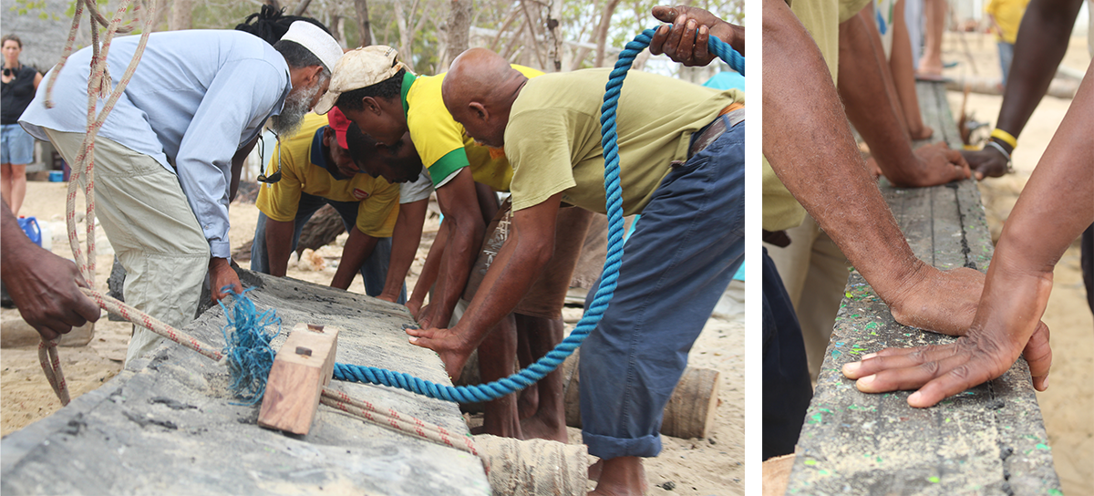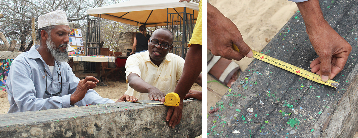 As the main manufacturing partner for this project, Sam Ngaruiya from Regeneration Africa joined the launch as well on that day. The recycling company from Malindi is producing all the pieces for the Dhow in the same way they are producing the fencing posts. It is still a learning process though, to find the right mixture of materials in order to achieve the best outcome in terms of weight, strength and buoyancy.